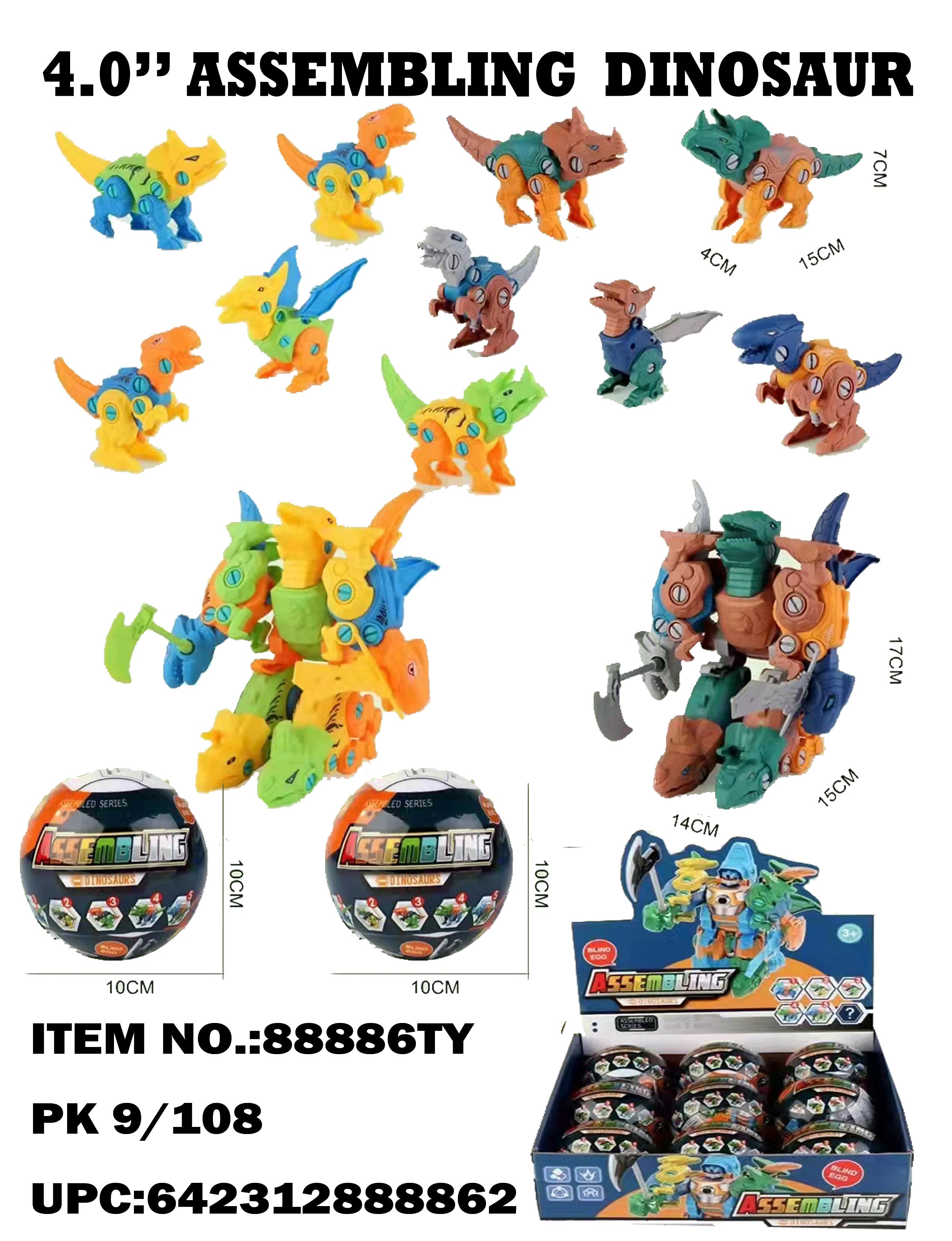 88886 ASSORTED DIY ASSEMBLING DINOSAUR IN THE EGG 9/108PCS
