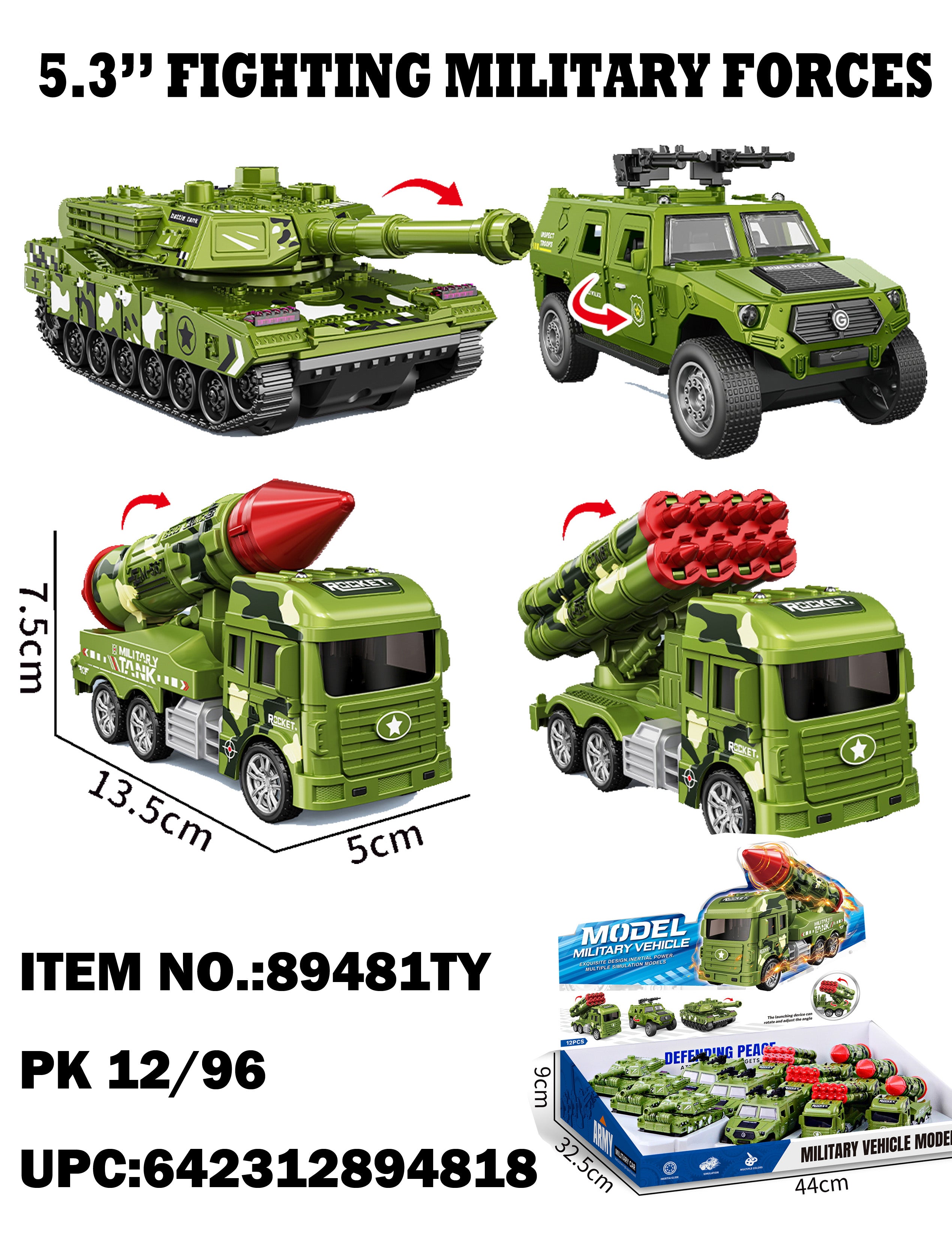 89481 5.3“ Camouflage Military Vehicle 12/96PCS 4 Styles Mixed