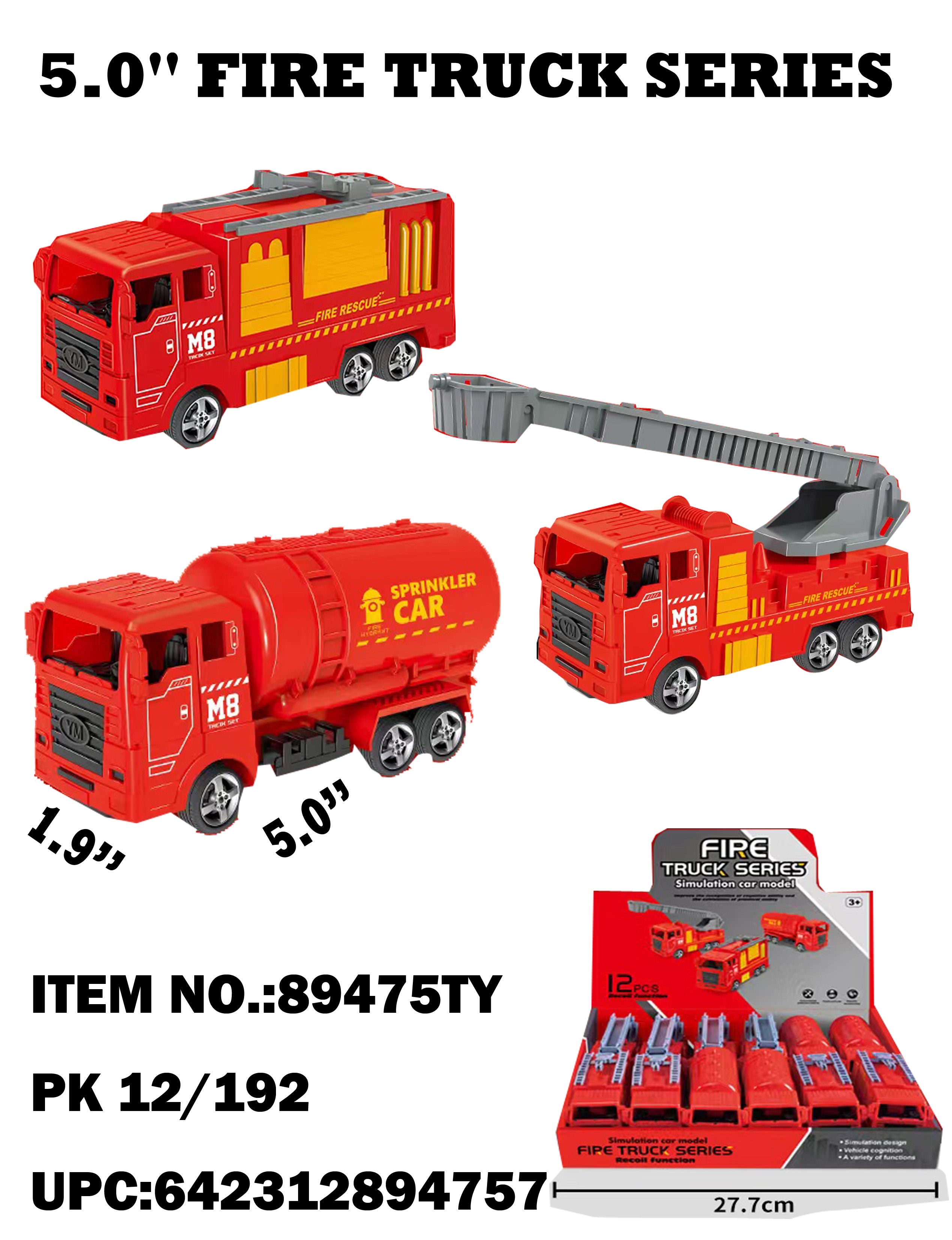 89475   5" City Fire Engine Truck 3 Styles Mixed 12/192PC