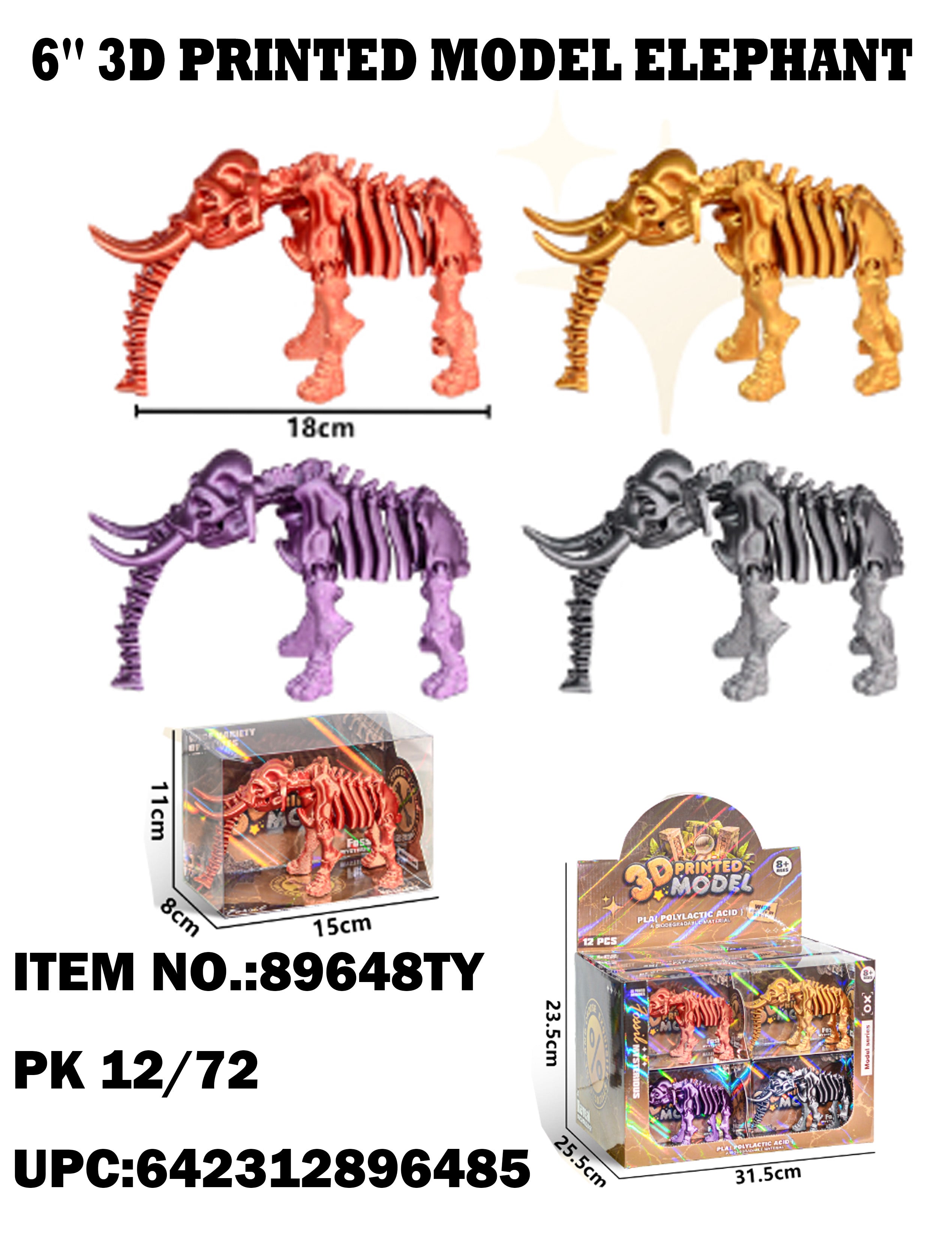 89648 6" 3D Printed Elephant 12/72PC Red, Gold, Purple & Gray Mixed