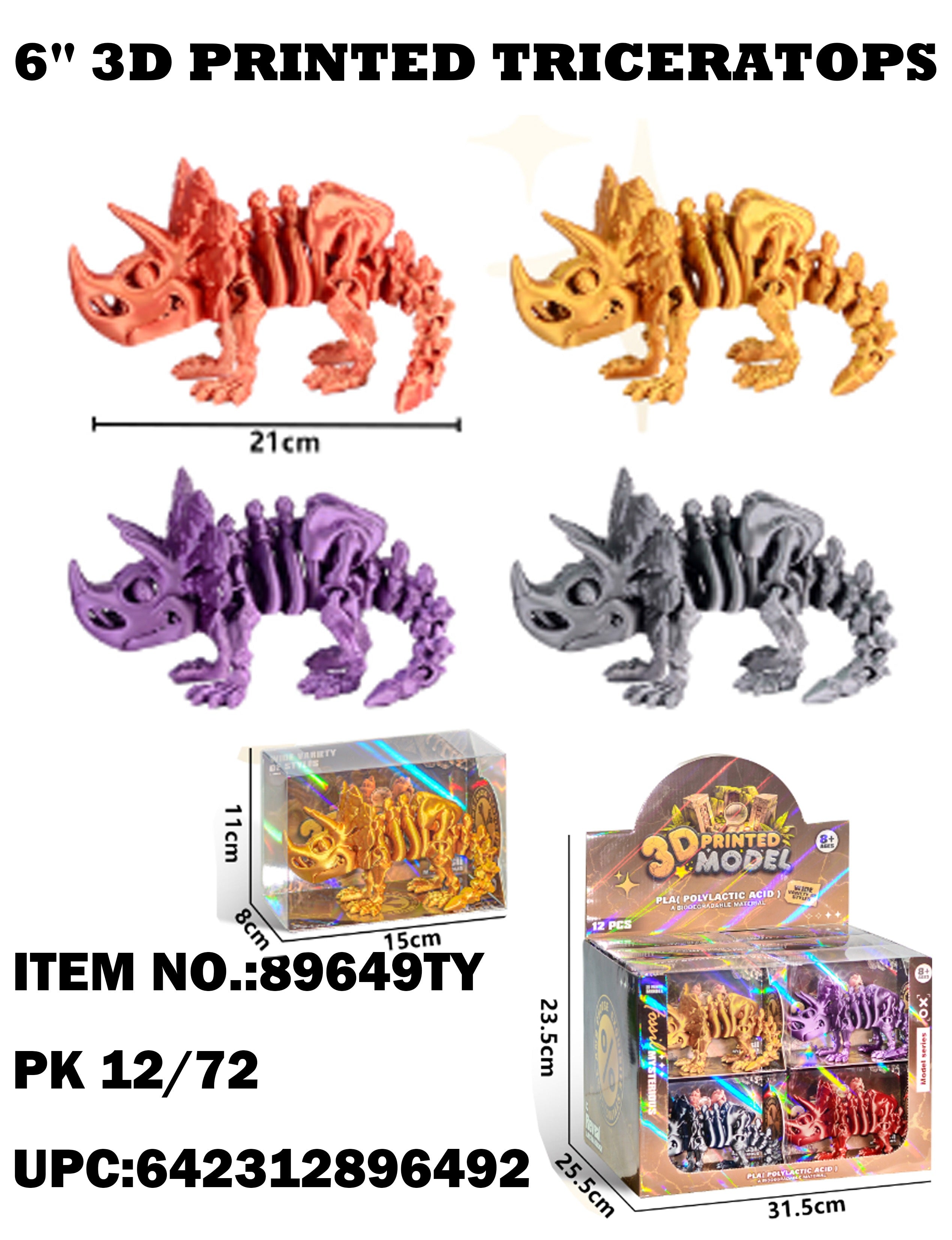 89649 6” 3D Printed Triceratops 12/72PC Red, Gold, Purple & Gray Mixed