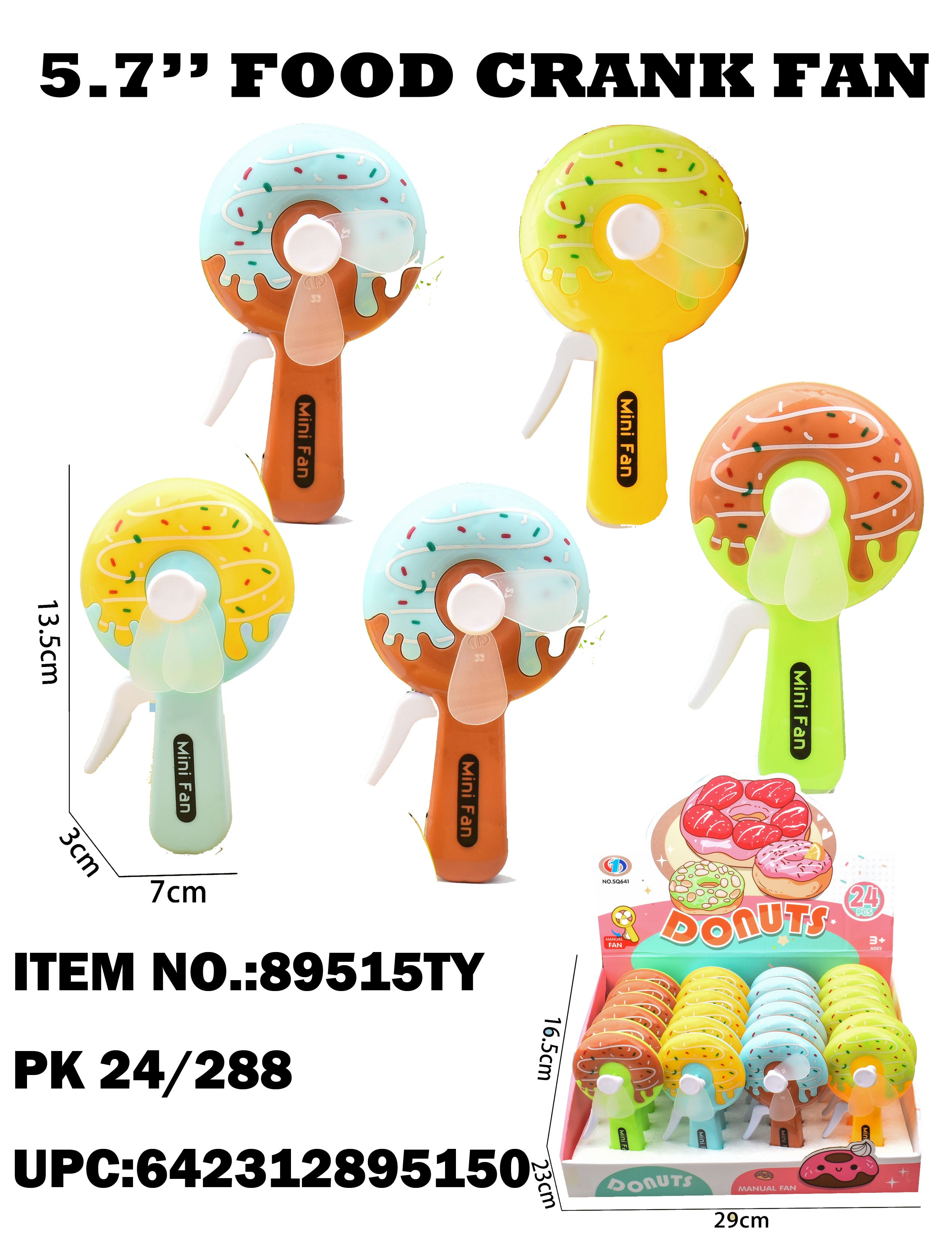 89515 Donut Style Crank Hand Fan 24/288PCS Four Styles Mixed
