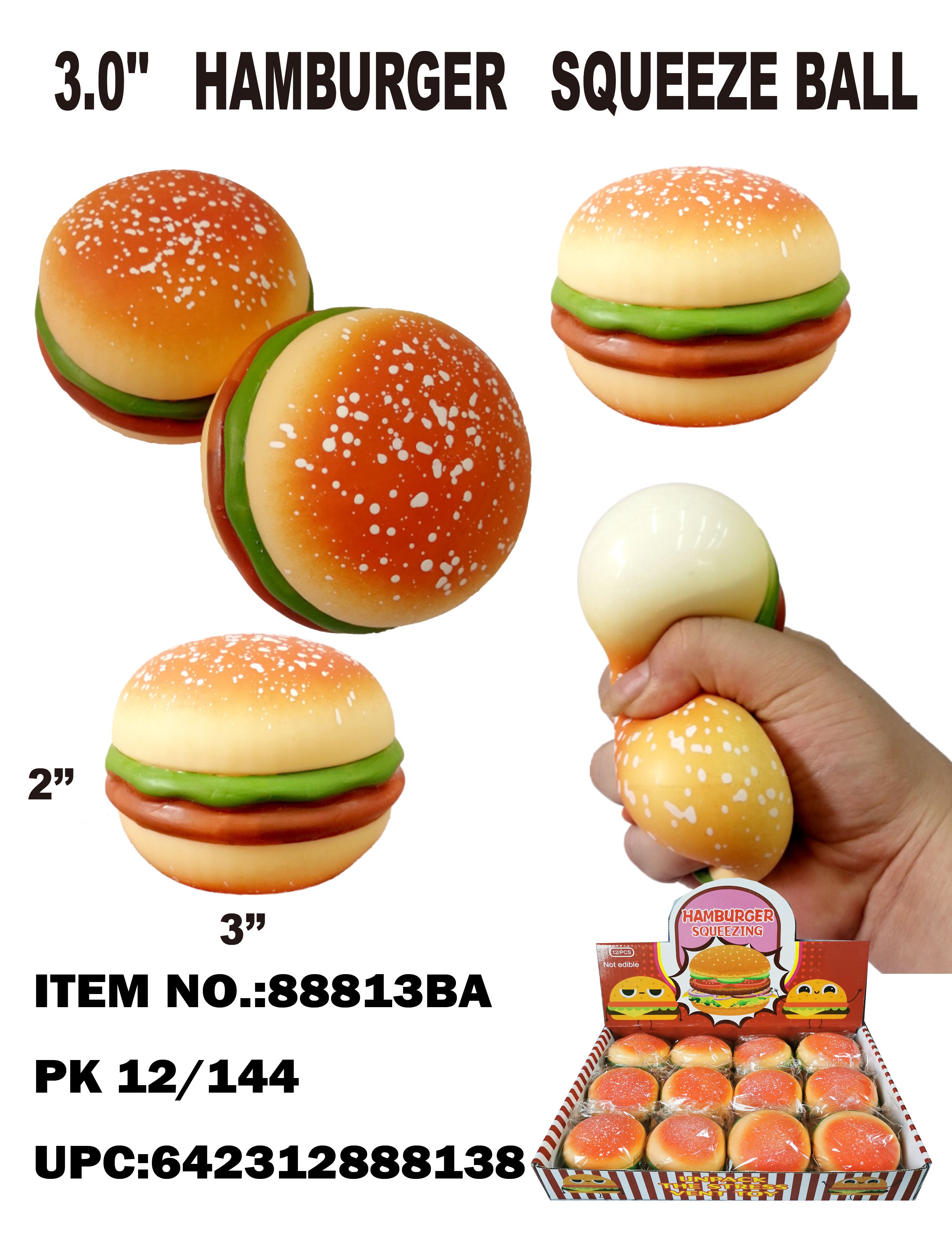 88813  3" HAMBURGER SQUEEZE BALL   12/144PCS